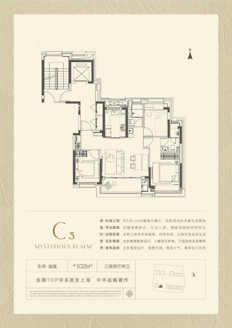 建面约102㎡ 三房两厅两卫