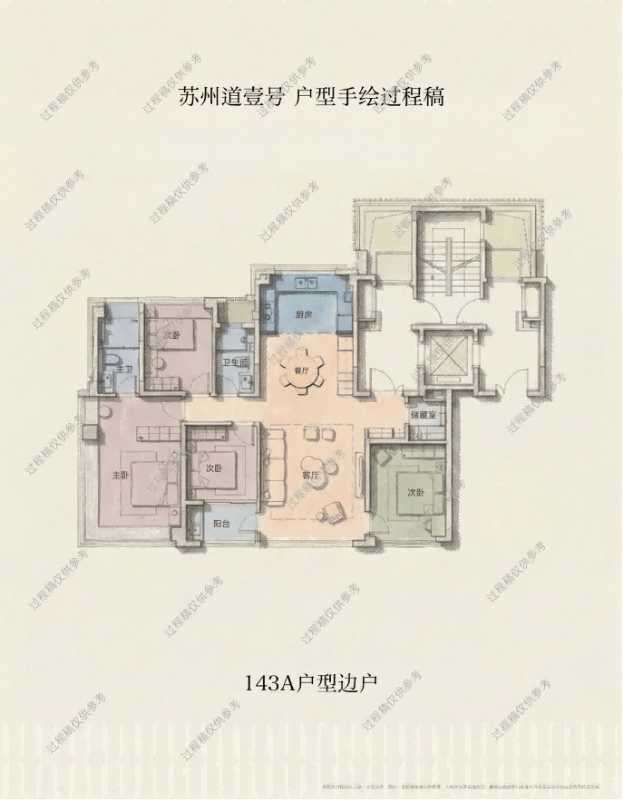 房子是为居住者服务的。苏州道壹号创新地采用了“客户共创”模式,根据真实居住痛点来设计户型。主力143㎡户型和178㎡户型都是四房,格局非常实用。