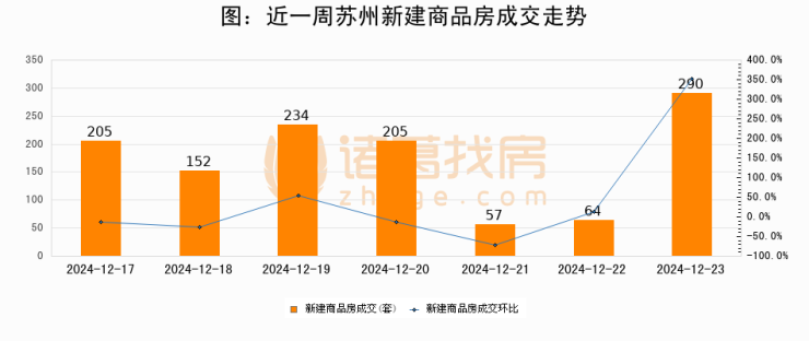 【苏州成交日报】12月23日新房成交290套、二手房336套;涨价房源23套