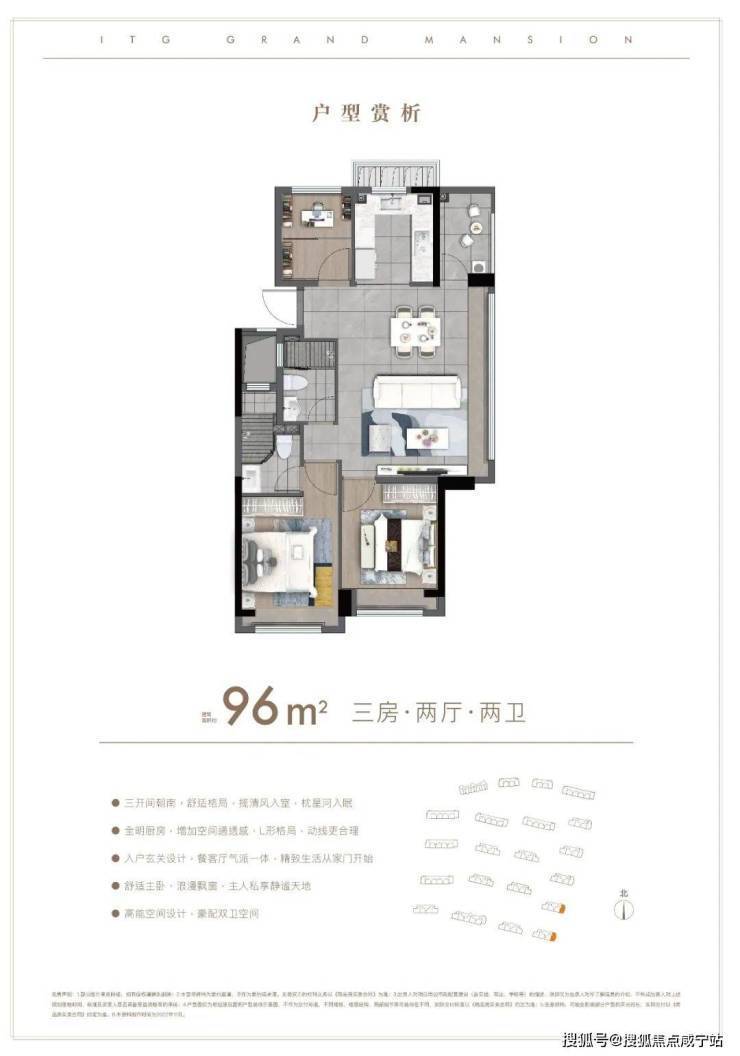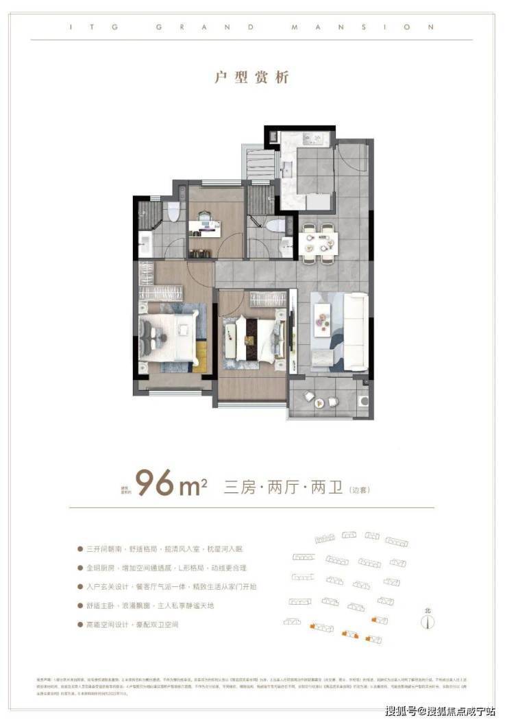 户型解析:约96㎡的3房,这种进阶级的产品当然最能体现舒适感。比如在入户动线上,客餐厅LDK设计更能凸显与家人的亲密交融。同样也利用客厅阳台,次卧阳台,主卧飘窗,北向书房飘窗这些更多的开窗面,向阳而生。