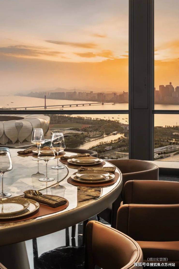 无界的空间如钻石般迷人,在不同的欣赏中折射出品位的耀目光辉,窗外的钱塘江,折射出西湖群山的现代风景,也同时照应着钱江新城“日月同辉”、奥体博览城的当代荣光。