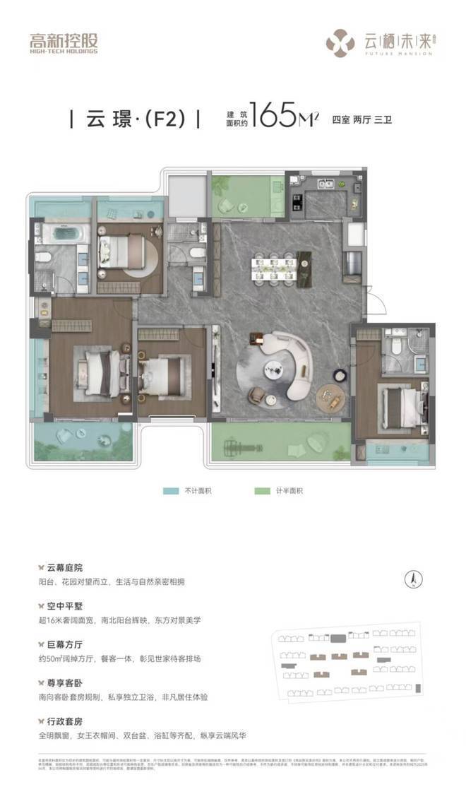 产品:20栋7-10层洋房+2栋17层小高层,总户数580户,主力户型建面125-165㎡四房,得房率83%-95%