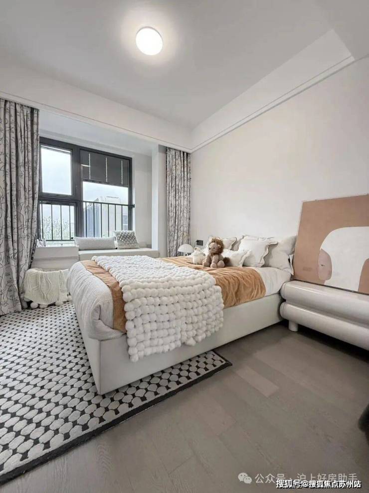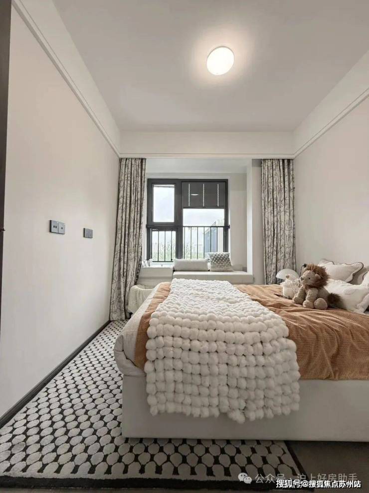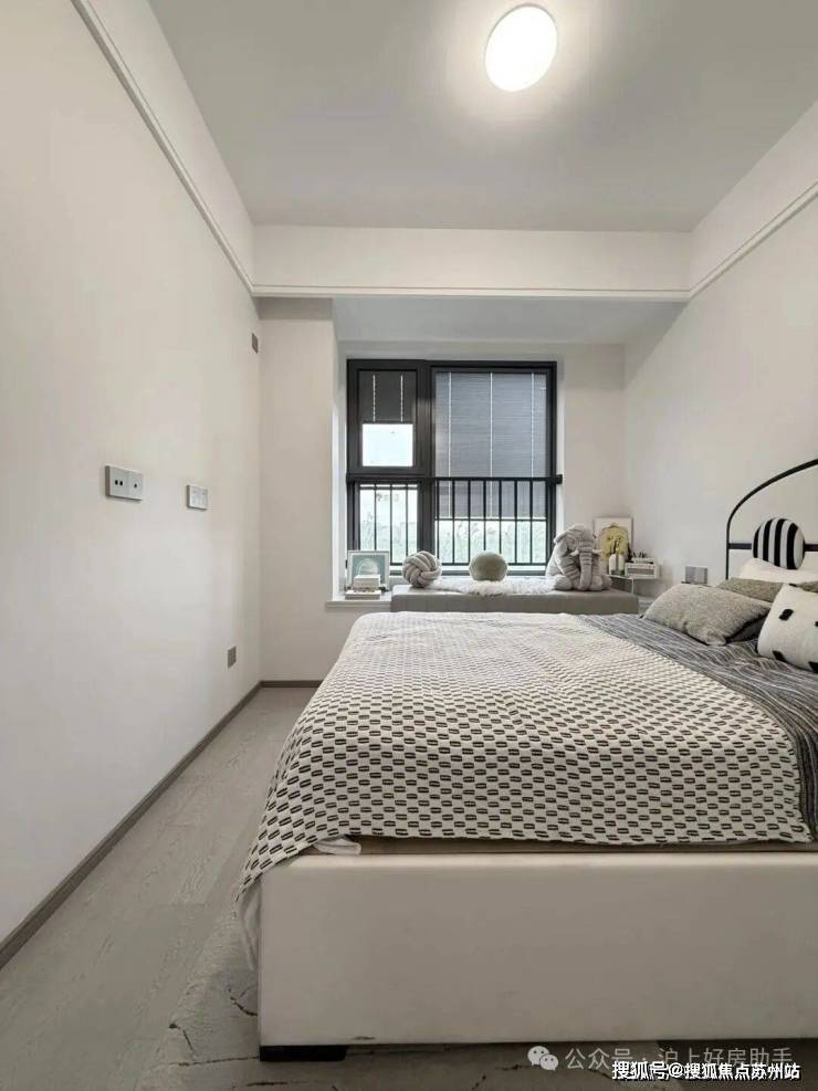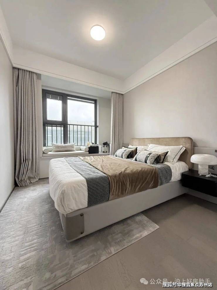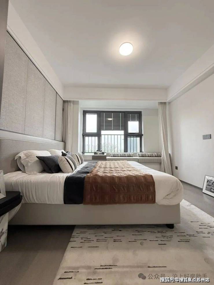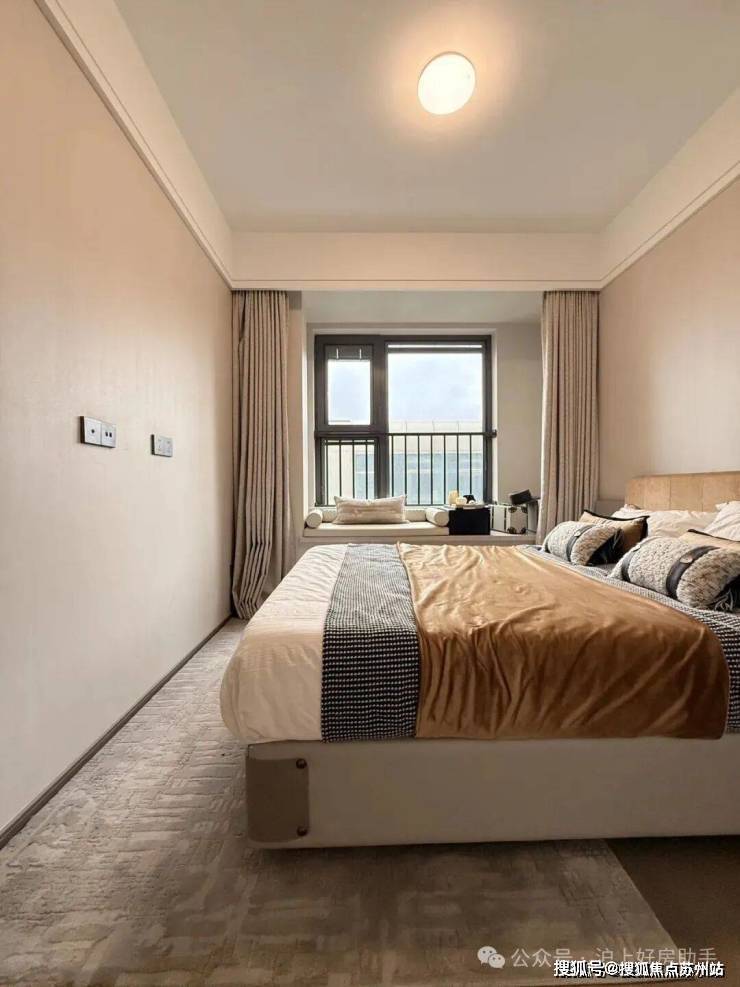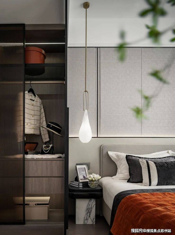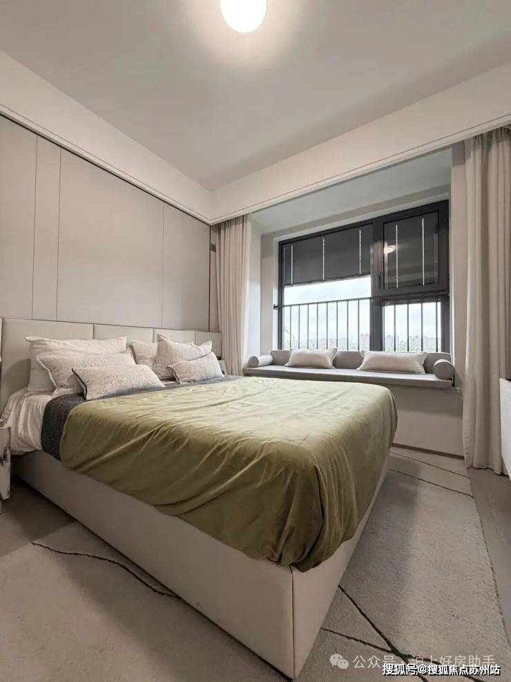 主卧床背景墙进行了软包处理,省去了业主未来二次装修的时间、精力跟成本,更好的给业主一个舒适且高颜值的家。