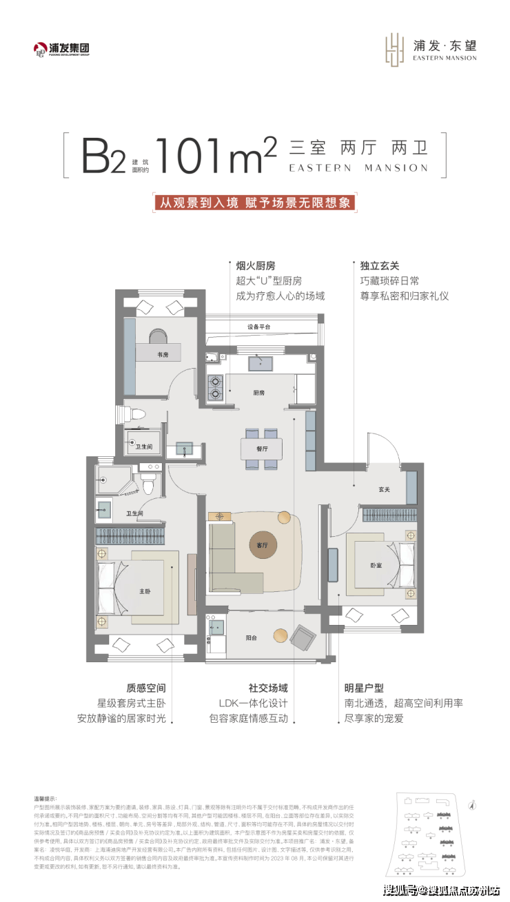 B2户型则是含金量非常高的南北通透飞机户型,动线更加合理。