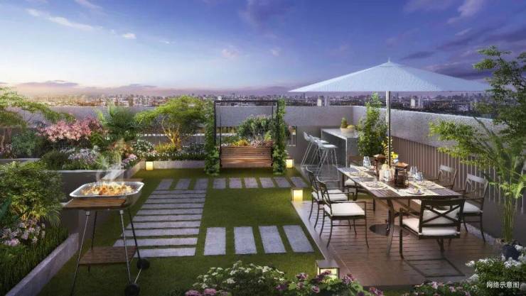 屋顶有专属的空中花园,这里不仅可定制专属观星台,还可以是私人酒廊、茶室和烧烤场所。