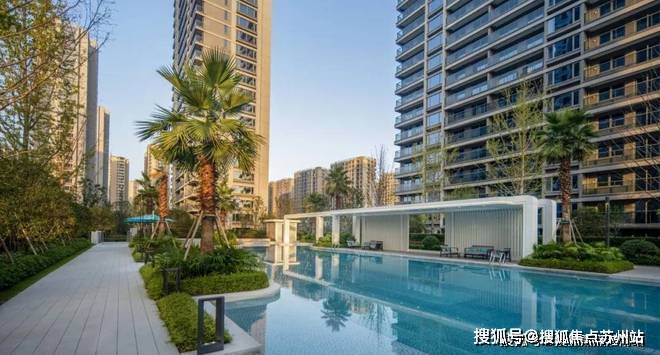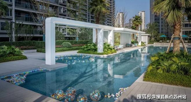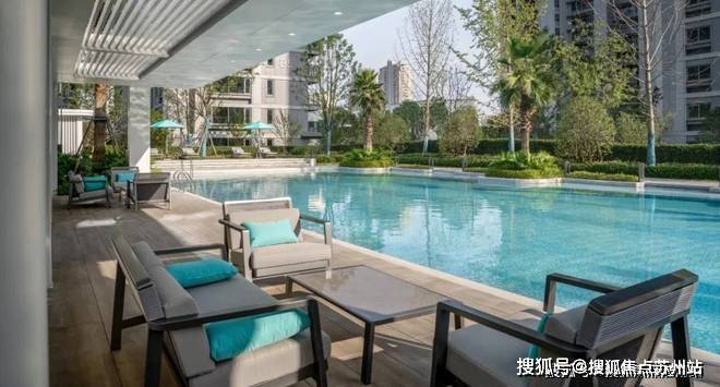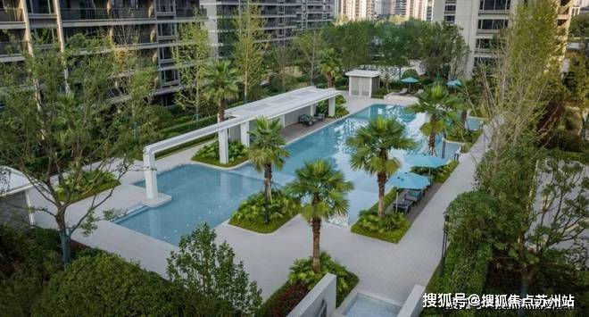 泳池构架以白色为主色系,蔓延的水系丰富了视觉层次,时刻上演假日时光。居者随手挽起一泓碧水,感知静谧晚风拂来,柔和视觉,亦舒缓心境。