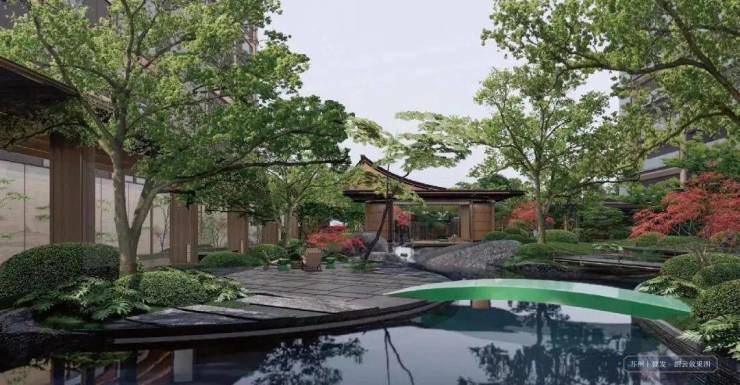 建筑风格:现代东方风格外立面,搭配江南园林景观示范区