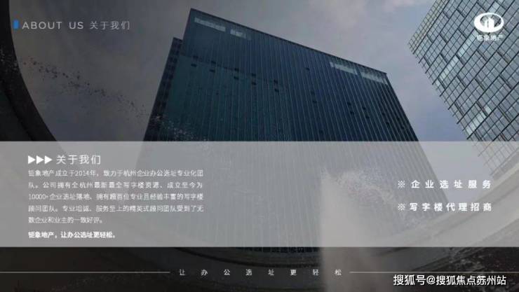 钜象地产—杭州写字楼租赁领先者,作为杭州最大的房地产代理公司,旗下三个分部分别位于滨江星耀城、钱江新城航空大厦、钱江世纪城博地中心。