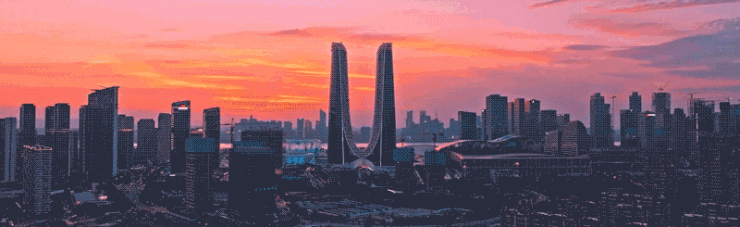 杭州之门项目位于钱塘江南岸,是亚运会重点配套工程之一。它由SOM和华东院领衔设计,拥有310m高的超高层塔楼,是杭州城市标志的一部分。项目落成后,将形成崭新的标志性沿江天际线。