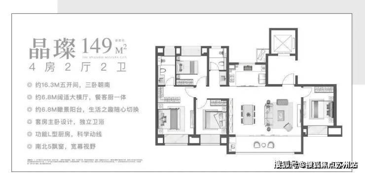 根植顶豪的生活属性,造极“我即中心,改善上乘”的居住理念。 约8.2m餐客大开间链接跑道式阳台, 铺展大气丰盛的生活排场。宽阔厅堂里的流光盛宴,映照时代人物至为纯粹的社交乐趣和精神价值。 奢贵双套卧设计,独立卫浴间升级配置双台盆, 独立衣帽间里装点精致日常,宽景飘窗上收藏四季诗意……栖心时光,悦然眼前。