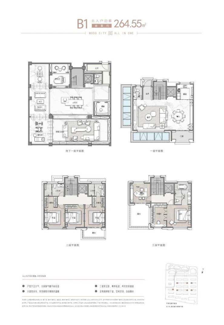 项目分为南北入户,均为地上三层,地下两层设计,满足业主们“有天有地有花园”的别墅居住体验!