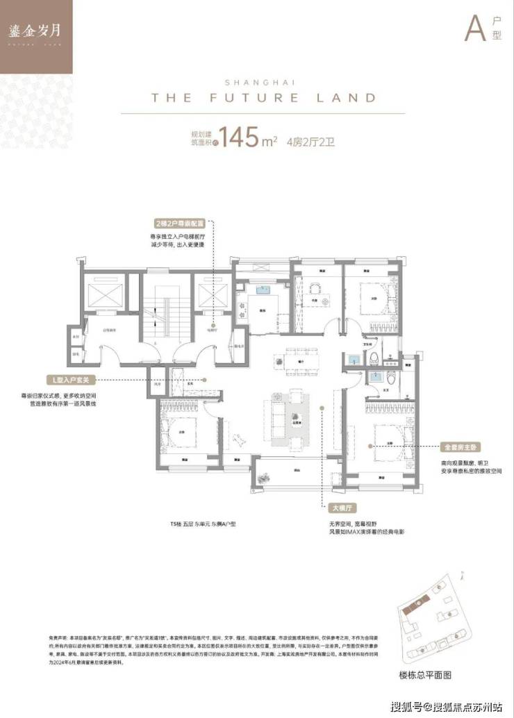 上海宝山上实·吴淞道1號售楼处电话☎:400-8123-664(预约看房热线)这是一个配置超大横厅+L型入户玄关的奢阔4房户型,同样搭配两梯两户+独立入户电梯厅的设计,不同的是横厅及各功能空间的尺度都进行了一定比例的升级。