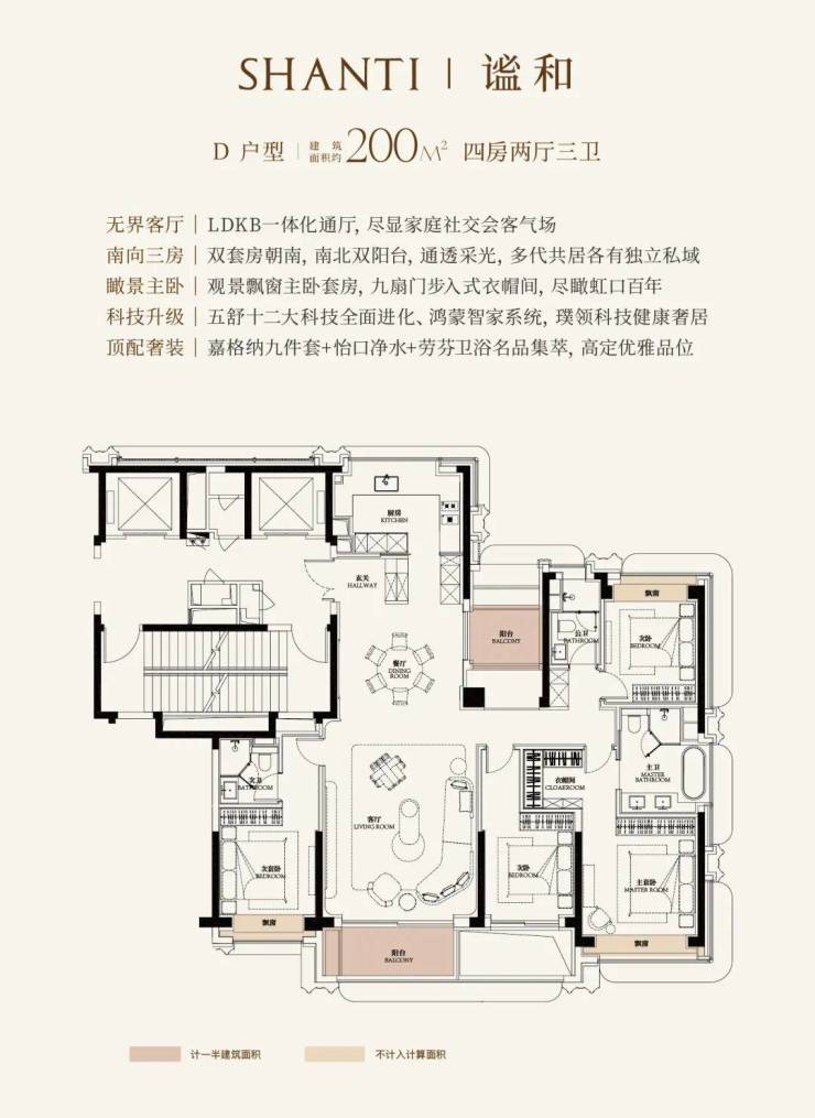 所有户型标配尚未面市的嘉格纳6/8件套顶级厨电奢品、卫浴界的爱马仕劳芬台盆马桶,实现功能与美学的再次引领。