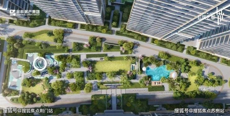 项目1期8栋住宅建筑呈南北排布,围合约13000方景观中庭。从鸟瞰图来看,虹缤之都9#楼既与银湖公园紧邻,向湖景公园敞开怀抱,向南又俯小区中央园景。自然形成以“园”为庭,以“湖”为院的“前庭后院”双乐园体验。