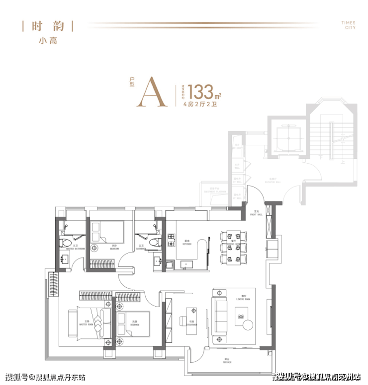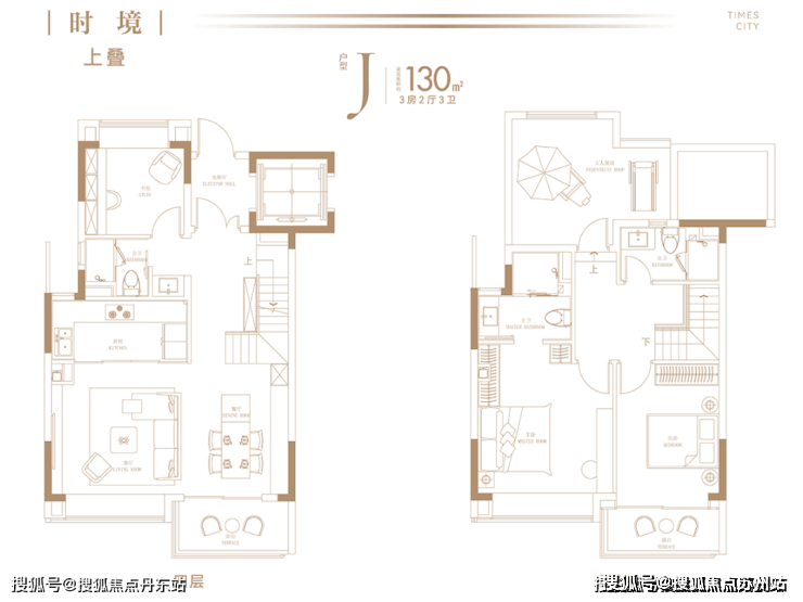 建面约130㎡-170 ㎡ 叠墅产品南北入户、专属电梯厅、超级横厅、超强收纳