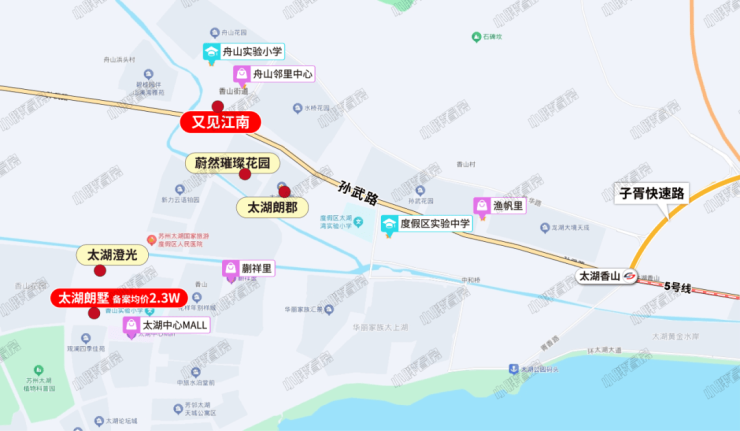 此外,小区南面还有已经开业的太湖中心MALL,这也是区域内首家大型全业态商业,总建筑面积约12万方。再往东去还有渔帆商业中心等,日常生活不成问题。