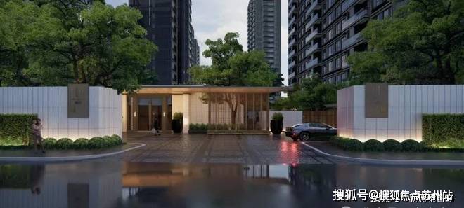 而入口的仪式庭院作为整个社区的第一视角界面,开发商以对称精致的logo高墙形成夹道的礼仪大门,将繁华喧嚣的城市界面与私享的归家区域划分开来。
