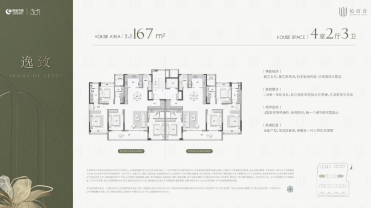绿城沁百合精心规划了8-11层的纯洋房社区,容积率仅约1.8,居住舒适度极高。 主力户型为建筑面积约155-235㎡的宽境大宅,为改善家庭提供了更阔绰、更私密的居住空间。