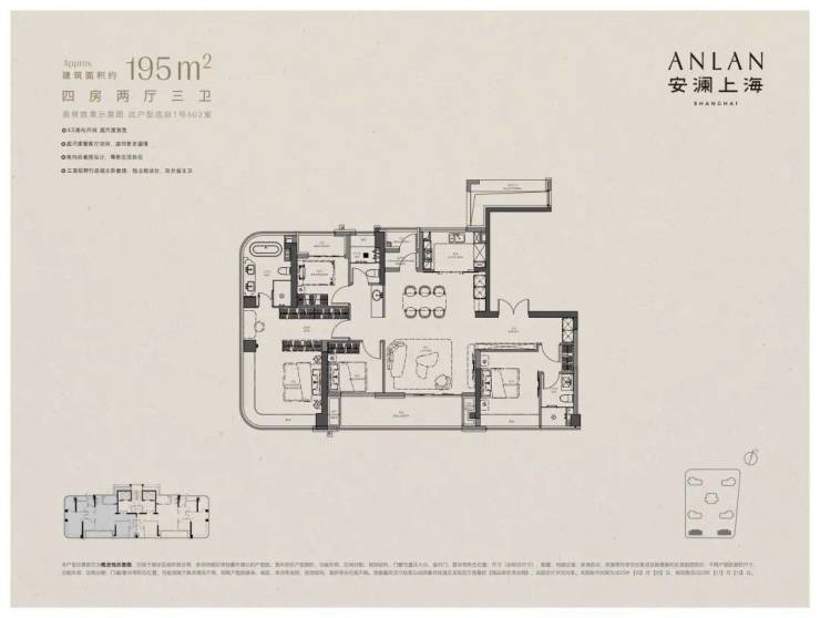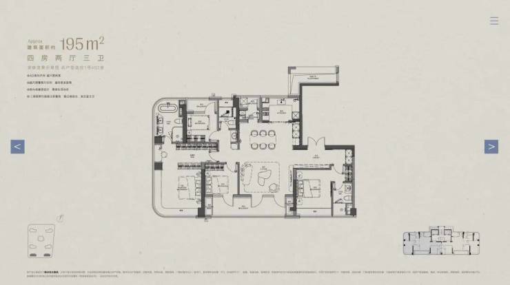 建面约195㎡,总价预计2700-3400万,折算单价约13.8-17.5万元/㎡