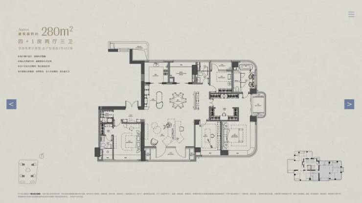 建面约280㎡,总价预计4300-5600万,折算单价15.3-20万元/㎡