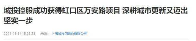 2021年11月9日,城投集团旗下的城投控股与虹口区人民政府共同签订了万安路地块国有建设用地使用权出让协议。