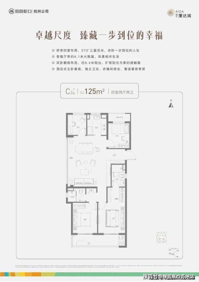 杭州缤印爱达城售楼处电话☎:400-8828-814(售楼处预约看房热线)建筑面积约125㎡的四房户型,则是plus版本,适合一步到位。南北通透的格局,提升了居住的舒适度。剧场式的客餐双厅,也是孩子们撒欢的主场;厨房U型操作台的设计,空间充裕,两位大厨尽可以大显神通;套房主卧、南向连贯式双阳台,都让生活充满意趣。