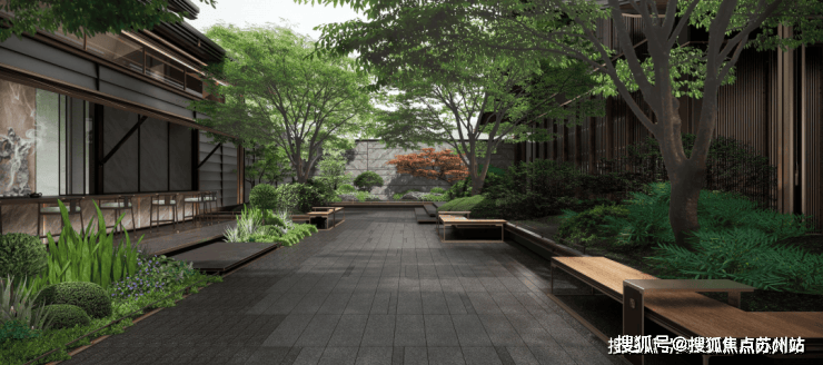 第二景风帘翠幕:进入青承门后,是一方精致的芭蕉庭院,让业主有一个洗尘归心的宁静体验。