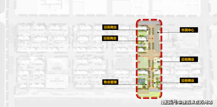 商业街:沿恭礼路设置商业店铺,创造形式丰富多样的时尚街区,形成充满烟火气息的城市街道。
