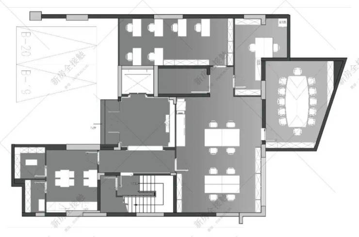 露台呈现了另一个舒适的休闲区域,通过区域感的塑造,沉浸式社交体验,让空间的平面布局与组成元素相互对话,满足动与静、开放与半开放的功能需求。