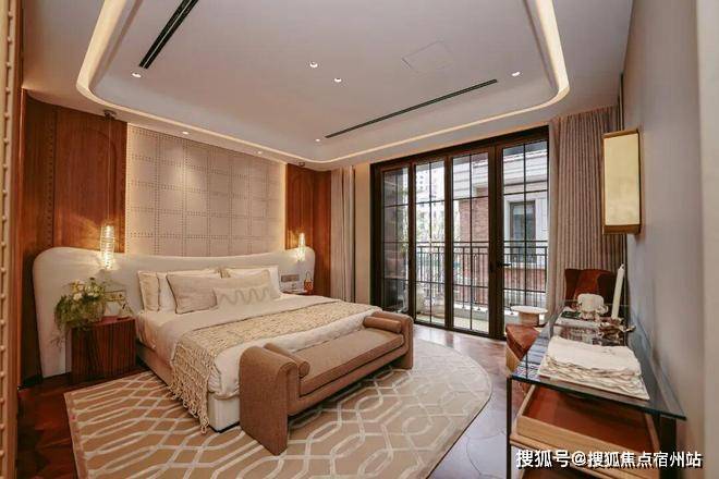 同样大面宽落地玻璃南向长辈套房, 外滩源著·复兴里售楼处电话:400-8673-567以零台阶平层动线呵护长者起居,晨光入室、推窗见园,让孝心落地于每一寸空间细节。