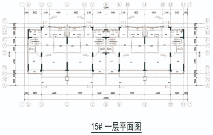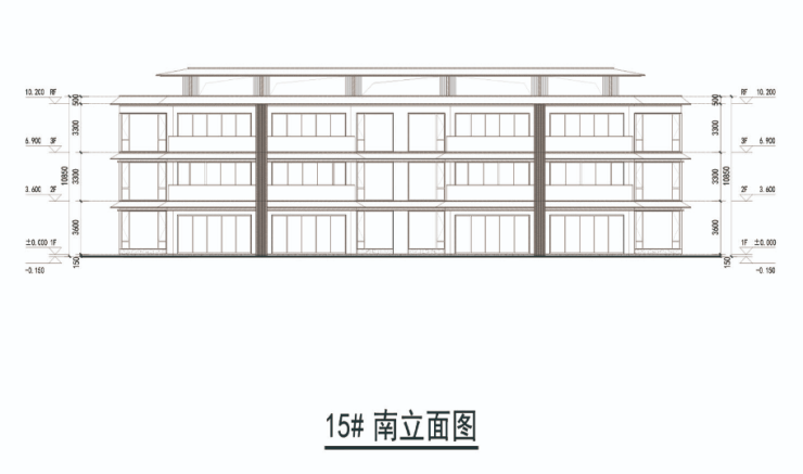 其次是15#,1排4户的设计,一层层高为3.6米,二三层高3.3米。