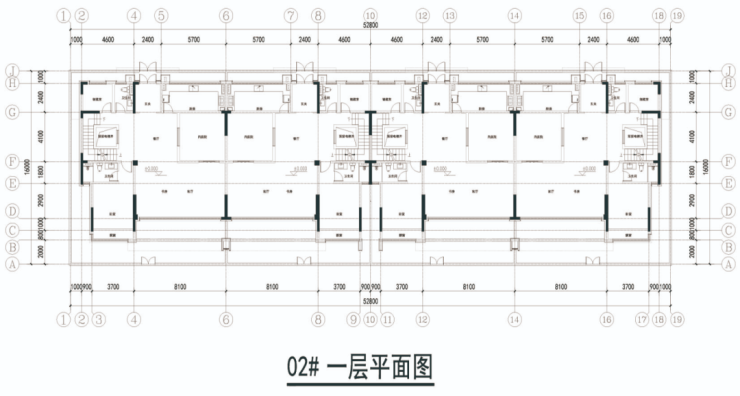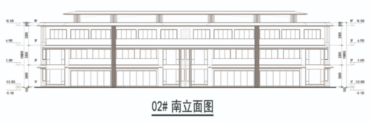 其次是2#,同样是1排4户的设计,一层层高为3.6米,二三层高3.3米。