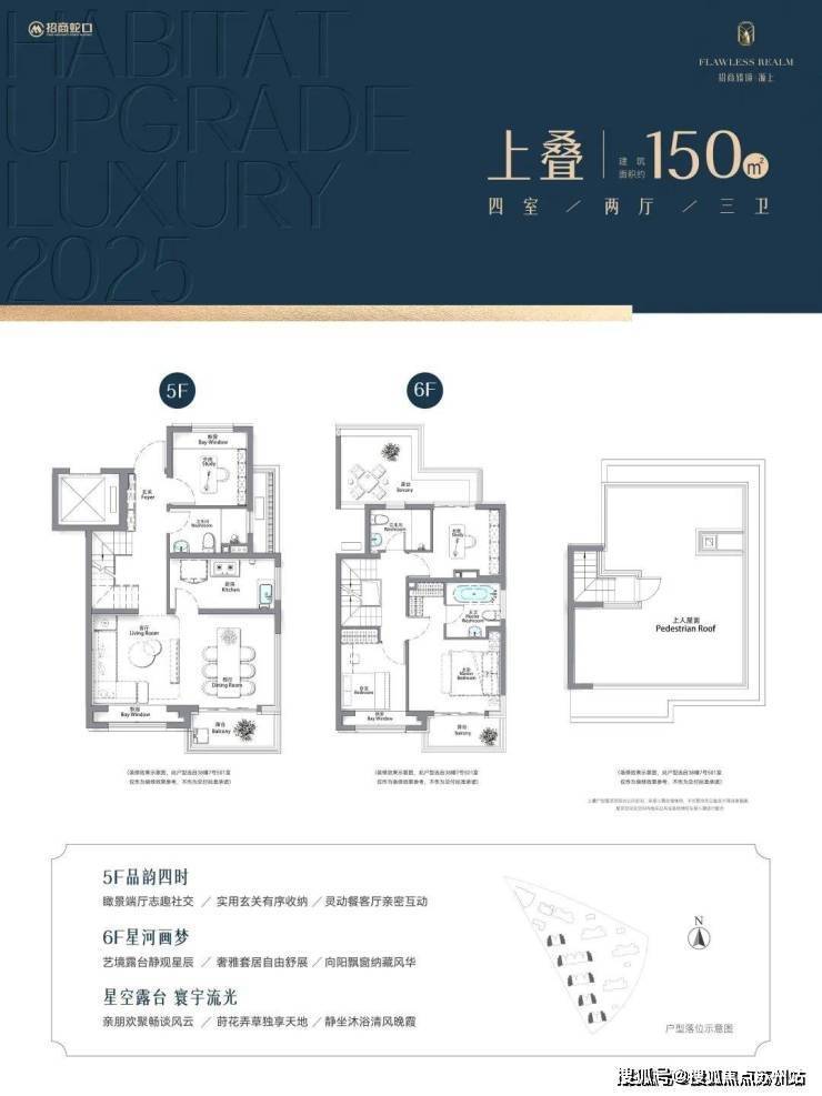本宣传资料所涉及的户型仅供示意参考。仅为横拟本户型装修效果叠加装修设想进行展示、所示室内装修、家具、陈设、灯具、门窗等除注明外均不在交房范围之中;相同户型因楼栋楼展、单元等差别,局部结构、面积、功能布局、空间分制、门窗/管井形态位置等可能有不同,并且强弱电箱、插座位置等均未在户型围中体现,具体以政府部门及终审定的图纸和《商品房买卖合同》为准,本广告制作日期为2025年5月20日,有效期至2025年6月20日。开发商:上海招宜置业有限公司,推广名:招商臻境。