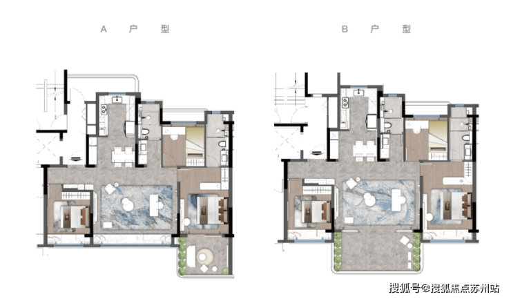 146㎡的府宸户型,四房两厅三卫,高端改善的首选。南向双套房设计,三代同堂互不打扰。超45㎡的无界方厅,巨幕视野,生活空间宽敞舒适。约23㎡的超大露台,承载生活逸趣,慢品四季流转。