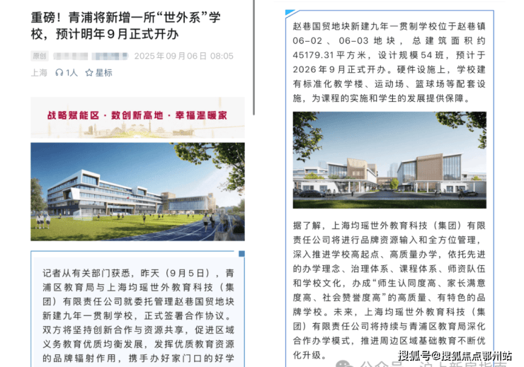 9月5日“世外”正式官宣落定赵巷,这所世外托管的公办九年制学校为国贸代建学校,与项目仅一路之隔,未来大概率对口。(期房不承诺学区,学区划分以教育局公布为准)。