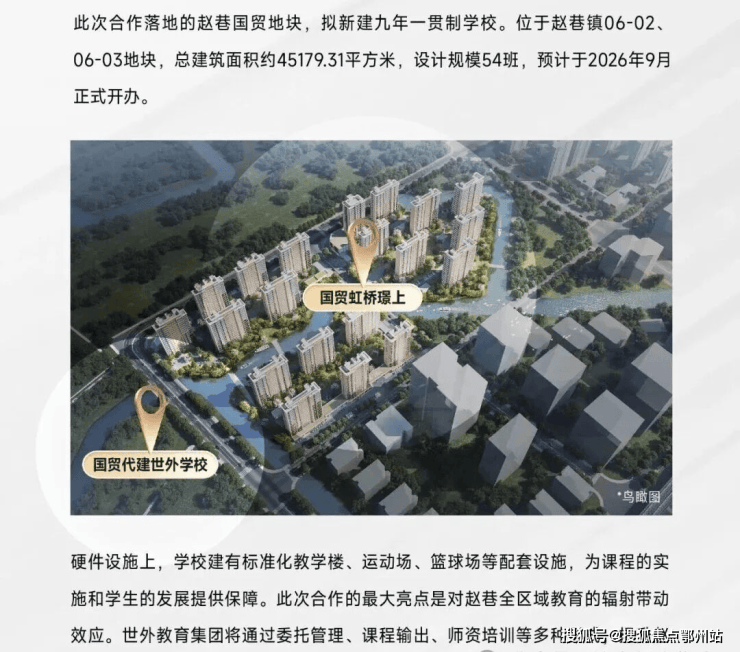 国贸为政府代建两所9年一贯制学校(小学+初中),紧邻项目西侧,一路之隔