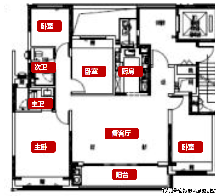 1#小高层,2梯2户,4房2厅2卫户型如下: