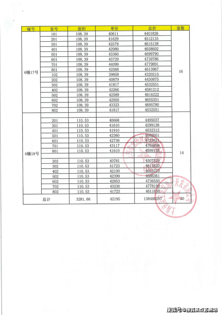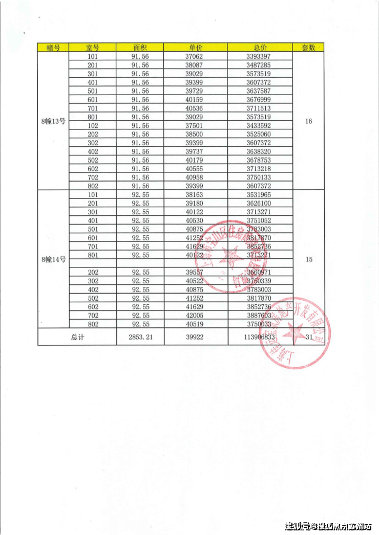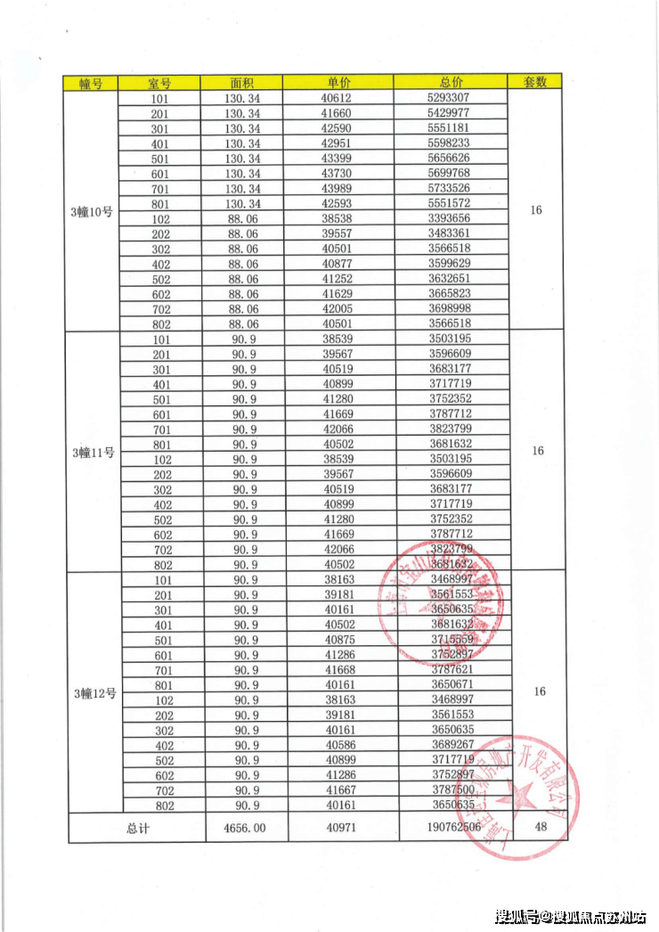 项目一房一价表