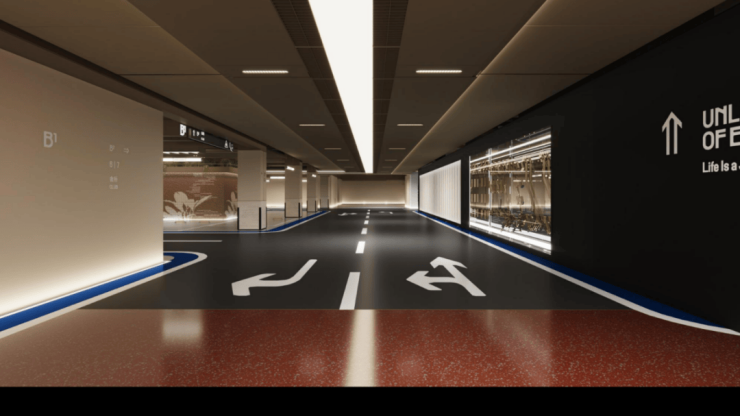 比如,艺术感与质感并存的地下车库.
