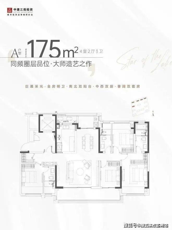封面迭代,hao宅升级。现在同样是一线临湖的珍罕地块,中建三局将湖居大宅全面升级,倾力打造的 「中建·太泽之星丨御湖」,这一次带来的全新作品 起步直接约175㎡,户均约220㎡,最大做到370㎡的超hao华顶复,绝对的鼎she标杆,社区保证高端改善圈层的纯粹性,放眼苏州可谓du一家。