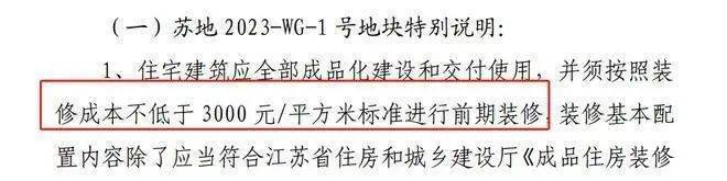 根据地块出让条件,后续住宅产品为全装修住宅,并且装修成本不低于3000元/m²。