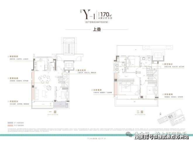 170m²上叠,南向双阳台+南北双露台: