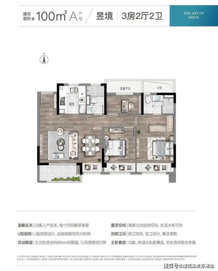 特别是大横厅的设计,既宽敞又采光充足,融娱乐、休闲、会客于一体,而大境悦府的主推户型——100平方米的纯横厅3房2厅2卫设计,更是方正之作。该户型南北通透,阳光每日洒落,超大尺度飘窗,尽享最佳光照与清新空气,定义了居住的新境界。