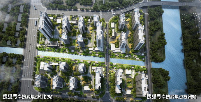 为居者创建了这样一幅舒缓惬意的水岸悦然图景,春申塘、西马屯泾两大天然水系环绕,社区外营造了滨水活力轴和烟火生活轴的十字生态,让整个社区宛若一座水上的自然岛屿。