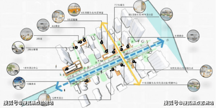 社区配套上,整个社区约3500方生活配套沿河而设,有意引入以下生活配套业态:咖啡简餐、便利店、水果店、早餐店、生鲜零售、健身瑜伽、洗衣店、药店等。在“边界消融”中,主动引导业主参与街区生活。同时,“屋檐之下,自然之家”的概念将架空层打造成“家外之家”的生活延伸,实现生活与自然的无缝衔接。还在社区10号楼和4号楼下,建立了户内户外联合,人与人情感链接的“阳光会所”