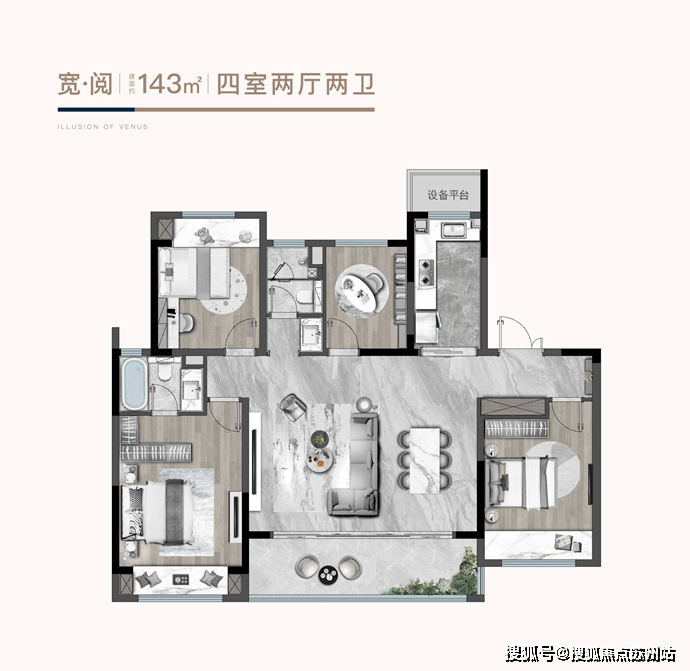 房子不仅仅是身体的收容所,售楼处电话:400-9696-224更是心灵的归宿,在空间格局的营造下,熙和樾庭从人居舒适度进行考虑,建筑面积约143㎡四室两厅两卫,让理想生活跃然眼前。