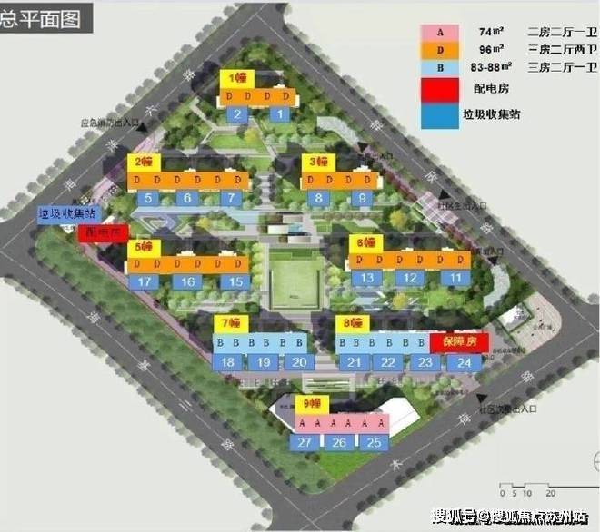 项目总占地面积约2.83万方,总建筑面积约4.85万方,由8幢8层洋房组成,规划总户数372户(可售住宅340套,保障房32套)。