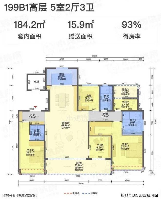 这一轮市场上的新房刚好处在卷得房率前夕,此前大多数高层楼盘套内实得率能达到88%都算优秀了,松川境199方户型的得房率高出一大截。