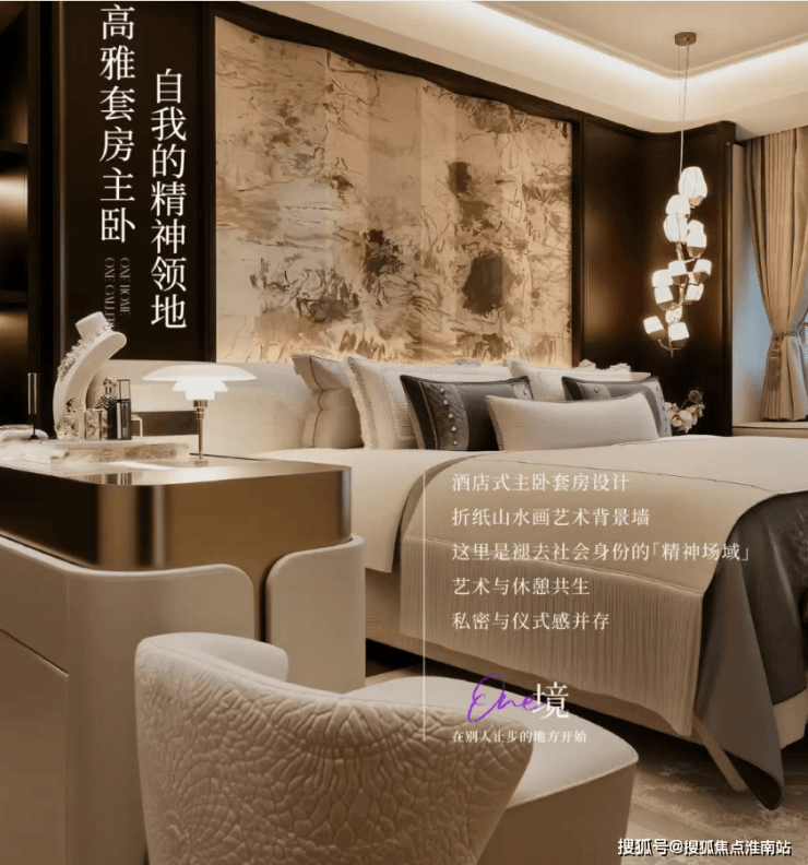 双套房酒店式设计,主卧以黄渊青艺术背景墙筑就静谧私享舱,次卧飘窗化身阅读角,空间如精密齿轮各司其职又浑然一体.