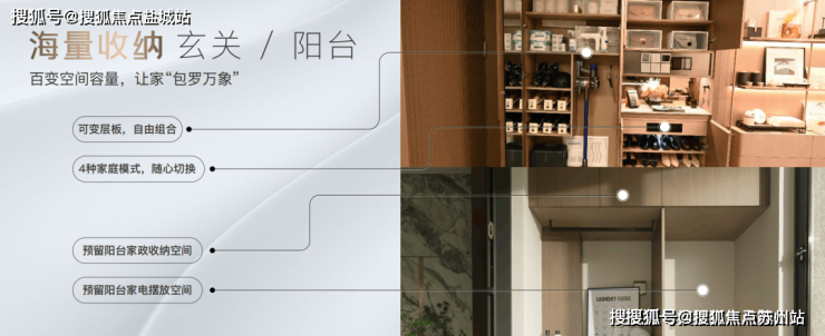 光合上城不仅打造定制级全屋收纳系统,并且 从玄关、厨房、卫浴、阳台四大空间,充分考量生活场景细节,随时随地满足收纳所需,带来4重海纳系统,让每一个业主都成为空间管理大师!